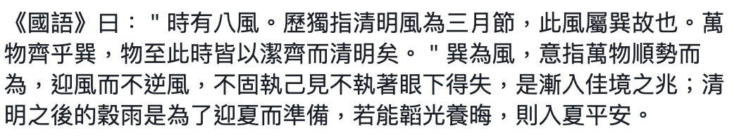 看到朋友轉引網路上的「文章」,裡頭引用《國語》,我很快瞄了一眼,覺得案情不太單純。《國語》的文字大概不會這樣走的(也不可能出現「清明風」、「三月節」這些詞)。剛好有點空檔,就手賤當了一下鍵盤科南。